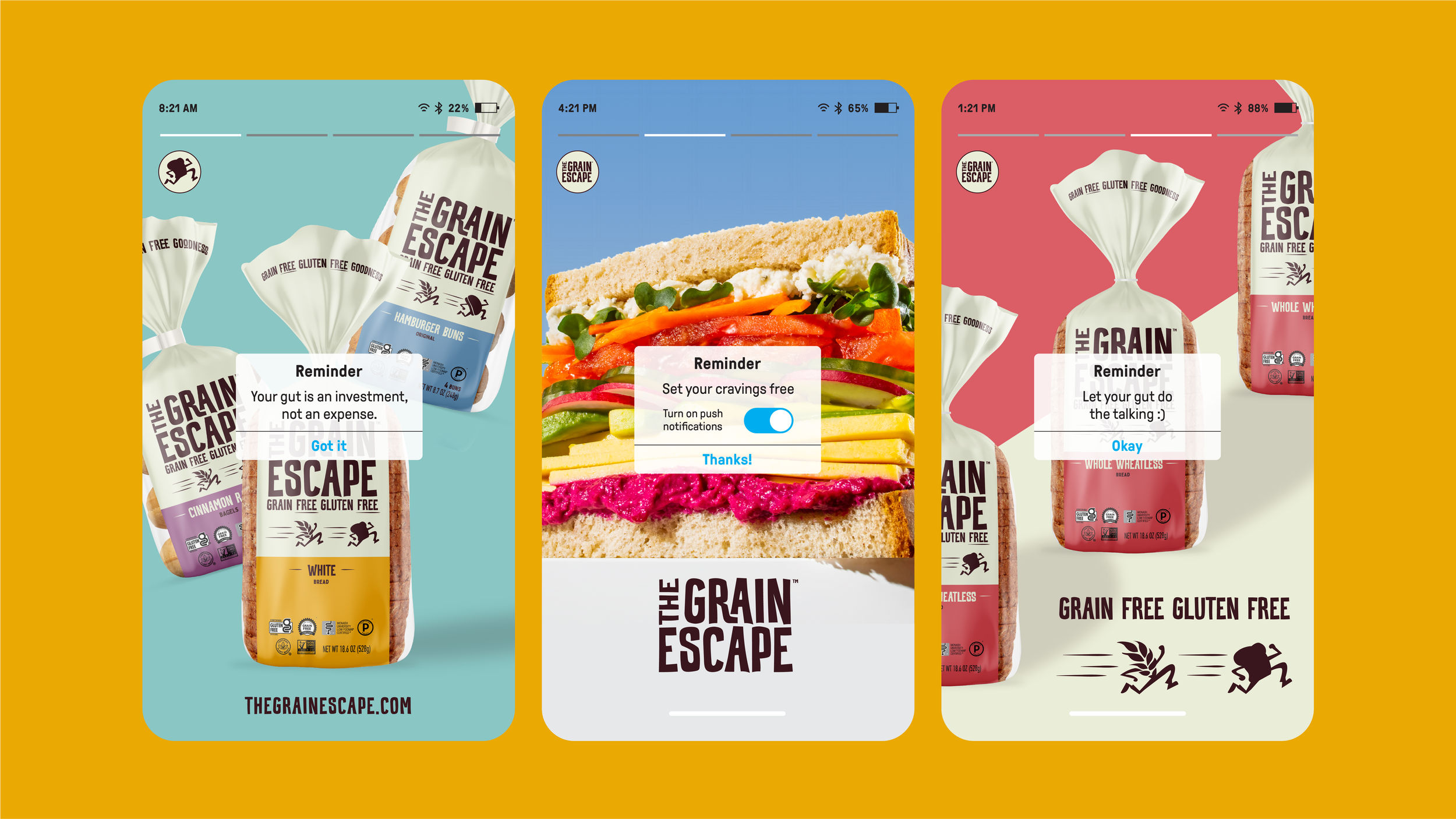 Bright Design was tapped to create the brand name, story, identity, packaging & consumer campaign for this new product. Together with Silver Hills, we identified 3 audiences we later defined as conscious curators motivated by medical, dietary or chosen lifestyle needs. The Grain Escape’s brand expression was born from their need state.